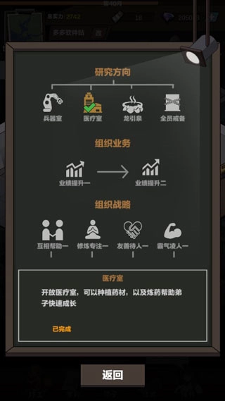 1、使用秘籍提高整体员工境界和属性,轻松规划完成各项任务以及挑战模式,轻松实现发展养成完成任务。