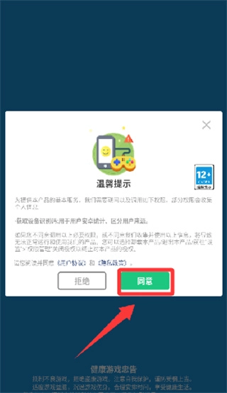 1、进入到游戏里需要进行点击同意才能游玩,如果还没有超过十二岁玩家就需要在家长的监督下才能进行点击;