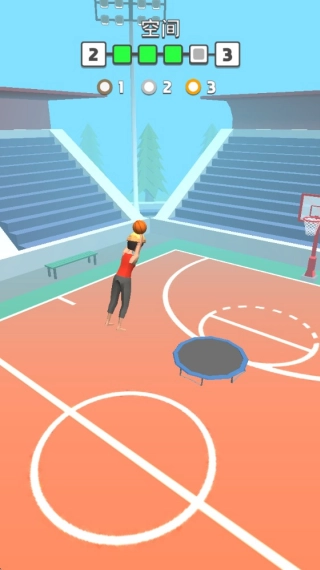 2、每一个关卡均经过精心设计,篮筐的摆放位置、起跳点的距离以及中间障碍物的布局都各有特色。到了后期关卡,还会加入移动篮筐、多重弹跳板等全新元素。