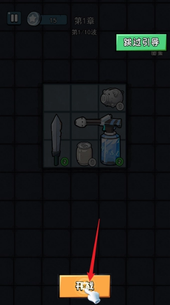 1、启动游戏后,按照引导提示完成各类装备的布置操作