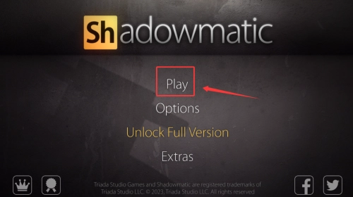 1、点击红框标注的Play按钮,开始Shadowmatic游戏。