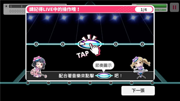 4、正式进入游戏后,会为玩家提供操作指南,跟着音乐节奏,点击下方开启原点;