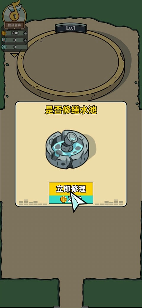 4、先修缮好我们的许愿池,这样赚大钱的第一步。
