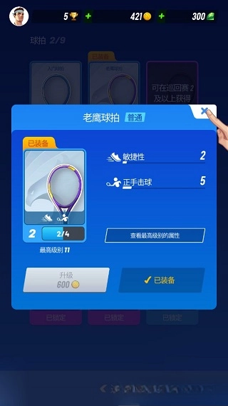 3.装备强化:球拍、手套、球鞋、护腕均可升级。