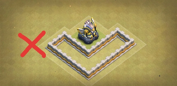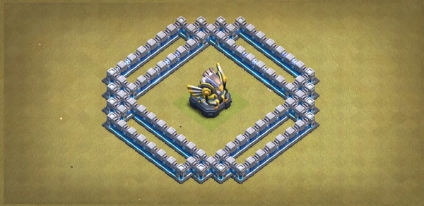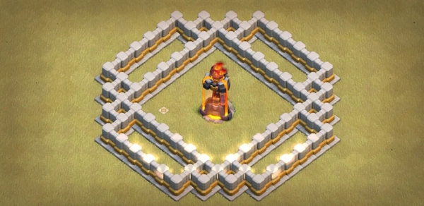 你基本上可以把阵型分成三个核心区域,每一个核心区域都有相同数量的城墙!听起来是不是不可思议?我们必须不惜一切代价保护城墙,也即利用更大的隔层分割建筑,只要蓝胖/皮卡流不能进中心就不是问题。