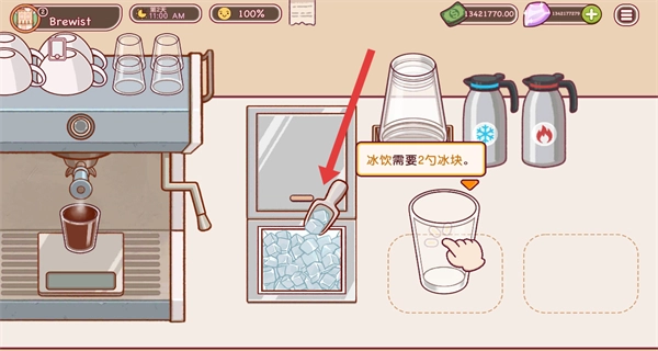 2、制作冷饮时,选择大玻璃杯,按提示操作,确保容器符合冷饮制作要求。