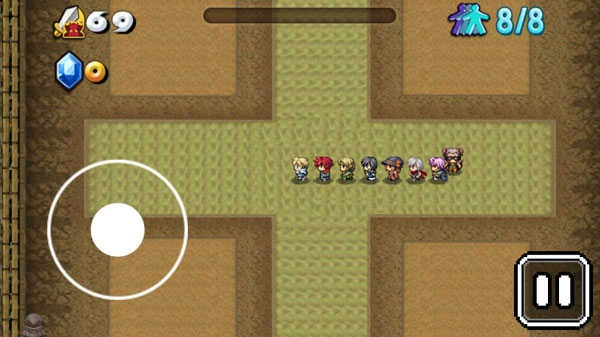 与传统的贪吃蛇玩法相类似,通过控制领队勇士进行行走,与怪物擦肩可以进行攻击,但切勿撞上,击杀有几率获得队员以及其他道具,一定时间后会通往下一关,每个关卡主题各不相同,还要时刻关注自身的血限。
