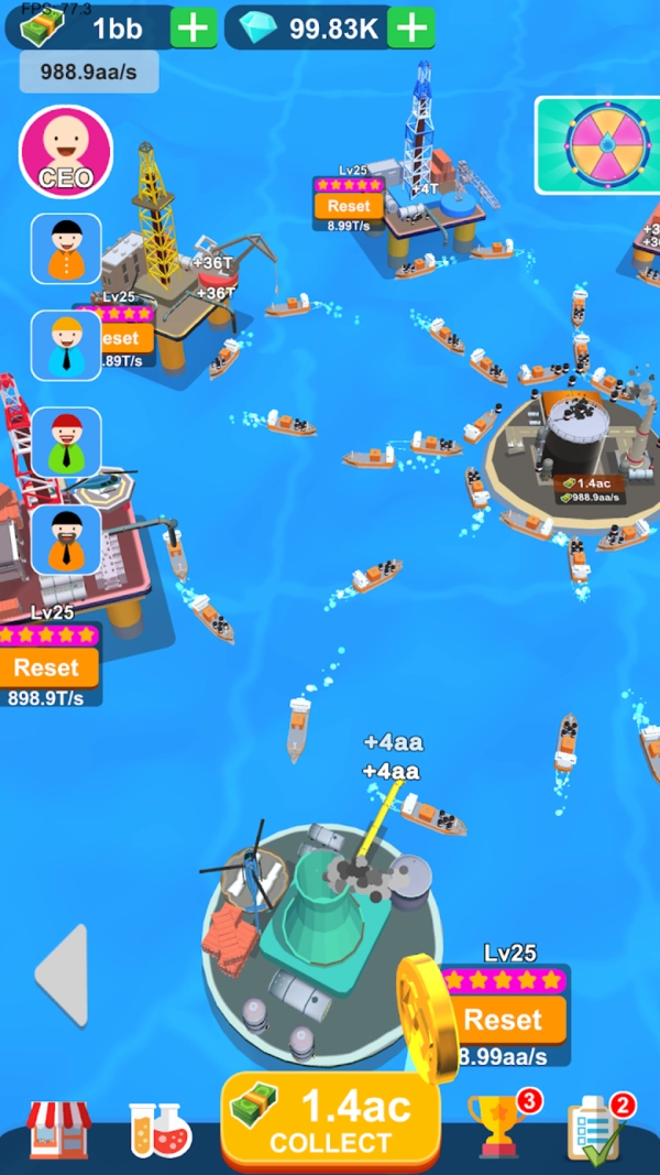 2、模拟经营的采油点全部都是可以自己来进行发现,发现更多的采油点并且建设和购买更多的渡轮;