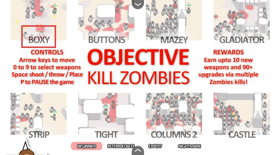 2、在任务选择界面,点击选择【BOXY】进入,开始消灭僵尸。