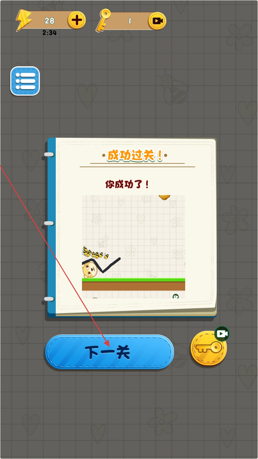 4、成功过关后,点击【下一关】,继续守护挑战。