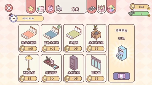 7、点击右下方的【购物车】图标,进入商城界面,可购买衣服、家具、墙面等商品进行装扮小家,