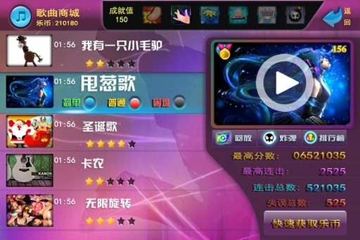 乐动舞指的操作方式直观简单,玩家只需专注于音乐节奏,在18格界面中准确点击出现的各种音符。游戏特别设计了完善的成长系统,玩家的操作精准度将直接影响得分和等级提升。丰富的成就系统和多级荣誉奖章为游戏增添了更多收集要素和挑战乐趣。多样化的音符类型设计大大提升了游戏的可玩性,每种音符都有独特的操作方式和得分机制,让游戏过程充满变化和惊喜。