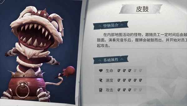 特性:敲鼓时无敌,破鼓后移速快,可攻击到低处的玩家。