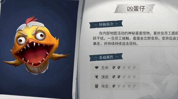 简介:在内部地图活动,喜欢在员工面前跳跃干扰。一旦被接触,会立即变异并暴走追击。