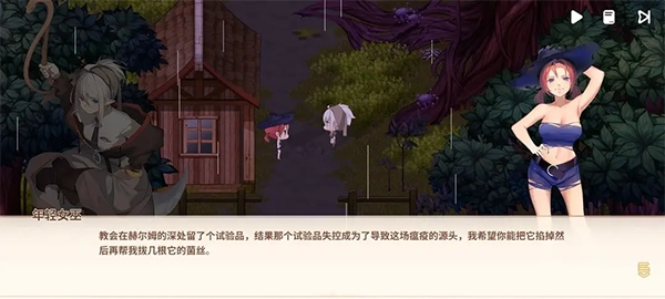 2、(三周目)隐者之潭——再次回到隐者之潭,发现女巫的地方没有被石头拦着了,进去后触发对话,帮助女巫击败腐烂增生菇,调制药剂。