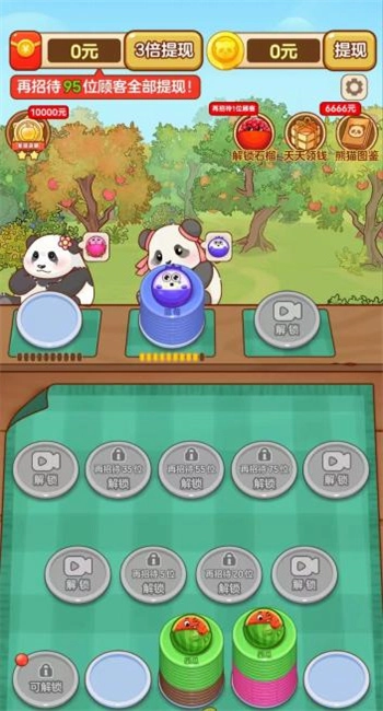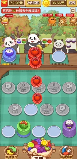 这是一款十分有趣的模拟经营游戏,玩家在游戏里能看到各种各样的可爱大熊猫,它们会提出不同的水果蛋糕需求,玩家制作这些蛋糕就能得到丰厚奖励,游戏设计得相当良心。随着玩家收益不断提升,大熊猫们还会提出多种复合口味的水果蛋糕需求,这对玩家的制作效率是很大的考验。