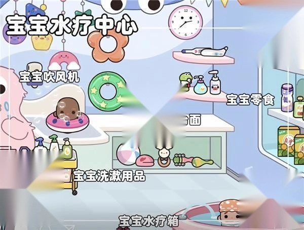 2、宝宝水疗中心:宝宝吹风机,还有一些宝宝游泳圈各种形状云朵花朵星星等,宝宝洗刷用品,宝宝零食,宝宝水疗箱。