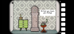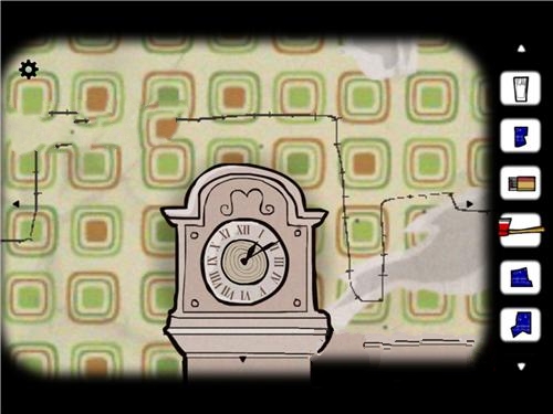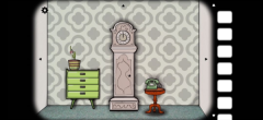 2、我们依然先是默认的面对有大型钟的这面,在盆栽柜子上拿到望远镜,然后一直点击盆栽,就发现一直手深了出来,又缩了回去,可以拿到第一篇相框碎片。抽屉里面可以取得螺丝刀,火柴,柜子边上还有一片碎片,房间钟的上方也可以取得一片碎片。