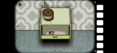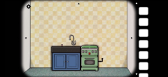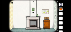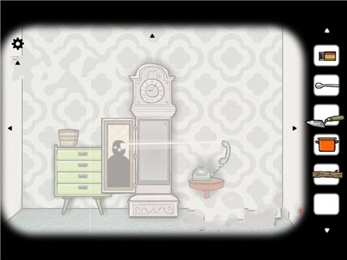 2、我们先是默认的面对有大型钟的这面,先点击盆栽柜子,在柜子抽屉里面我们能拿到火柴和勺子。接着我们点击右转镜头到另一面面对窗户的房间,打开墙上的灯泡按钮开灯,点击向上按钮,从天花板的灯罩里面取得一块相片碎片,接着回到窗户这里,再点击一次窗户,会飘出一片相片碎片。
