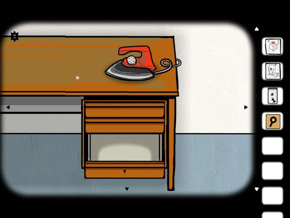 4、残忍的一幕要来了,点桌子切换到熨斗场景,点熨斗抬起,在点击小虫让它走过去……