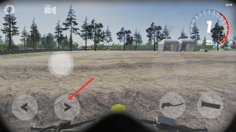2进入驾驶情境后,点击右侧箭头图标,驱动摩托车向前移动,借此慢慢掌握摩托车的操作方法。