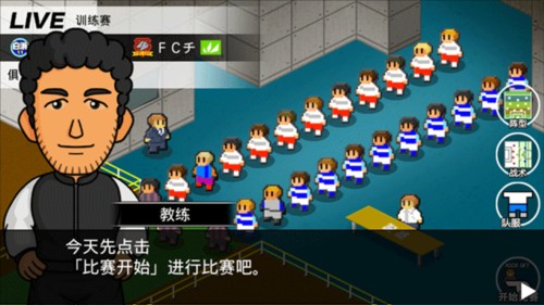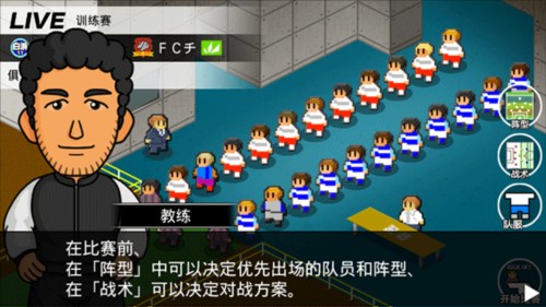 2、比赛开始前,可通过点击阵型来调整出场队员与阵型布局,点击战术则能确定对战策略