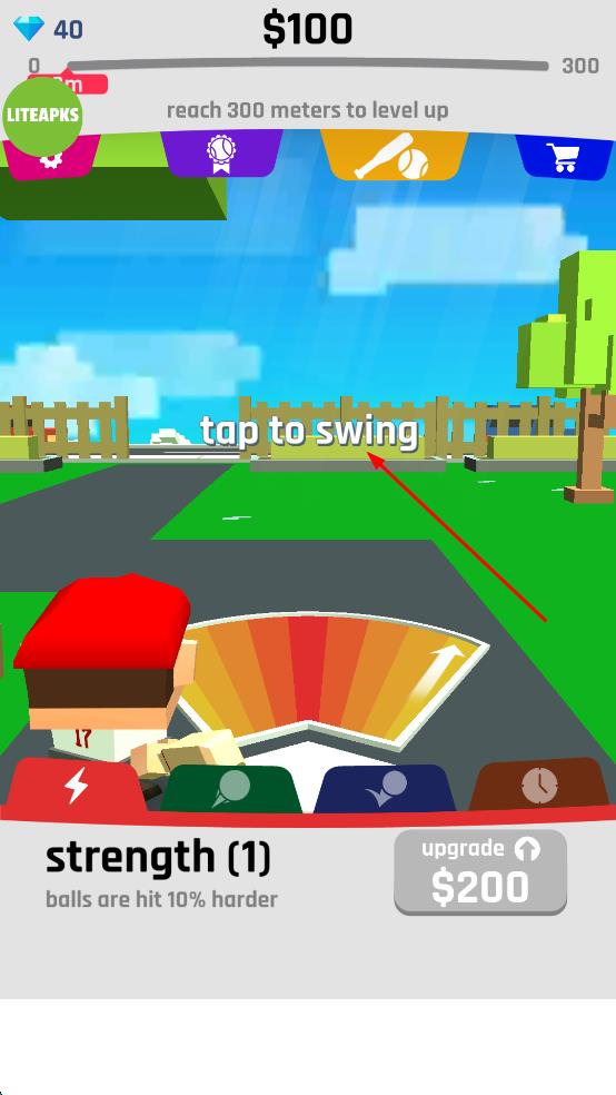 游戏开始后,当屏幕上出现“tap to swing”的提示时,点击屏幕即可挥棒击球,从而开启棒球跑酷挑战,目标是尽可能将球打得更远。