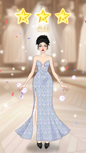 4、设计完成后,角色穿着设计好的连衣裙展示,获得【完美】评价(三星),成功通过关卡。