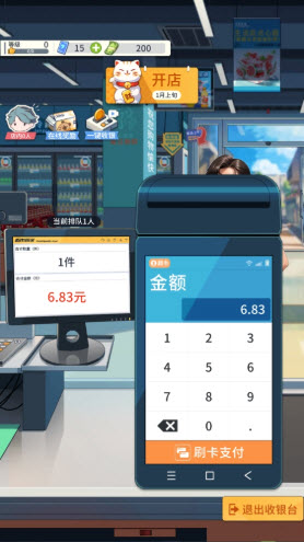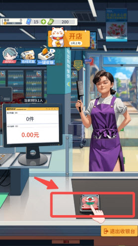 这款游戏的玩法和操作都十分简单,玩家只需扮演超市老板,负责超市的供货、收银等经营事务来赚取收益即可。