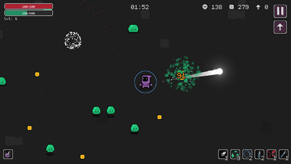 3、当我们靠近蹦跳的怪物时会自动发起攻击,但波数和冷却时间是受控制的,因此在冷却期间要留意躲避它们;