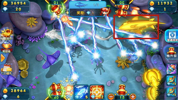 攻击大鱼可以得到更多的金币和钻石奖励,不过这也会消耗更多金钻,像大白鲨、大金鲨、大海怪这类都属于大鱼。另外要留意的是,要是大鱼还没游到你跟前,你就算拼命攻击也抓不到它,反而会浪费金币。