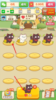 2、拖动相同的猫咪即可合成,获得更高级的猫咪
