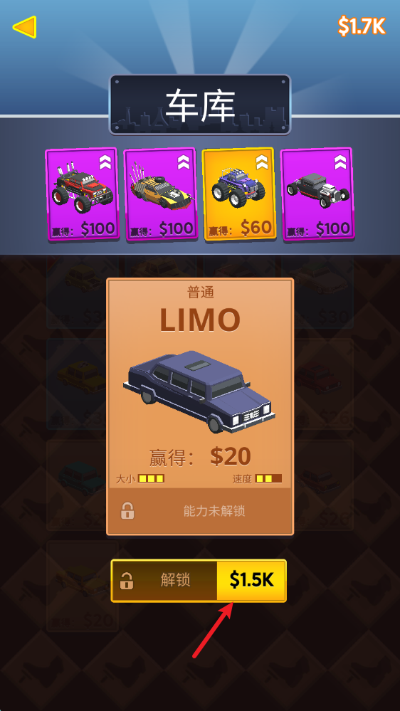 随后选择任意的汽车,消耗金币即可解锁能力。