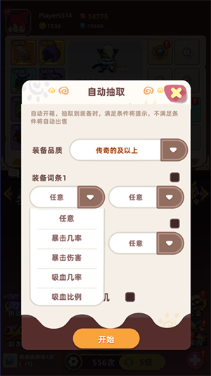 我们能够在自动抽取功能里设定装备的品质(也就是稀有度)以及装备词条(即特殊属性),等这些设置都完成之后,就可以正常启动自动抽取了。