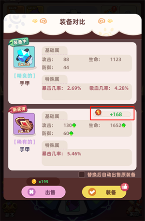 游戏前中期阶段,我们会优先依据战力情况来进行装备的筛选与更换;到了终期,装备词条是否契合需求就成了首要考量因素。当装备的打击、防守和生命属性旁都出现绿色箭头时,就可以去留意右上角的战力标识——要是这里显示为绿色加号,那就意味着更换这件装备能带来战力提升,直接替换掉当前的低级装备准没错,毕竟战力增长肯定是稳赚不亏的!