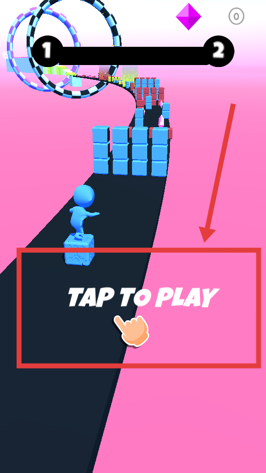 1、进入游戏界面,点击开始区域,让蓝色小人踏上跑酷之旅,准备应对赛道上的方块障碍。