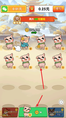 3、游戏里还贴心加入了自动合成的功能,能帮你解放双手,轻松完成合成操作,不断解锁更高级别的小猪,领取更多奖励。