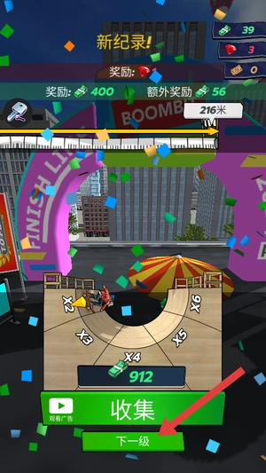 4、比赛结束后若打破个人记录点击下一级按钮即可解锁新赛道并挑战更高难度内容。