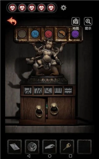 2. 2009年,在大柜子里寻找哪吒雕像,把之前找到的两个工艺品放置其上,依据这两个工艺品上面的图案得出密码。