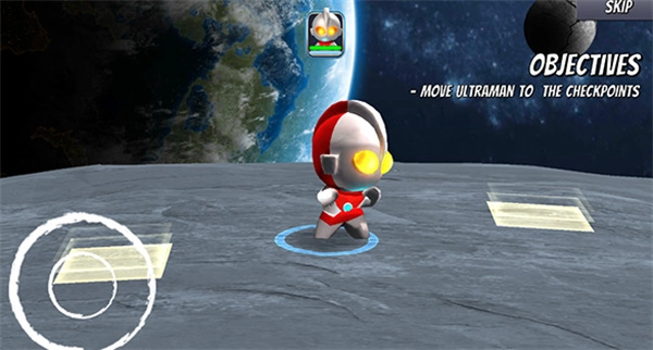 1、玩家会进入基础操作学习课程,点击左侧按钮即可将奥特曼移动至黄色区域。