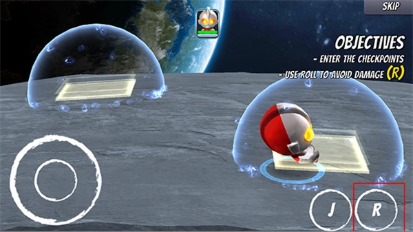 3、点击”R“可以控制奥特曼翻滚到黄色区。