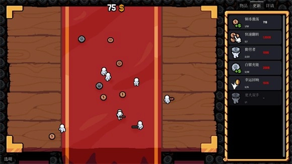 你持有的硬币数量越多,可抛掷的次数也就越多。通过购买升级,能让硬币抛掷速度加快,进而获取更多收益。去探寻不同硬币类型间奇妙的相互作用以及出人意料的协同效果吧。