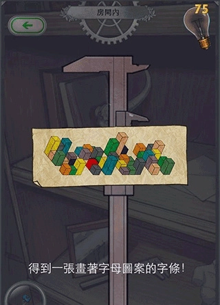 5、返回S区域调查盆栽,获取数字提示7-5;接着前往E区域,打开柜子左侧的尺子机关,将刻度调至7-5,就能得到一张印有SAEK字母的纸条;随后回到S区域,点击桌子最下方的密码抽屉,输入大写的SAEK,成功后即可获取时钟的分针。