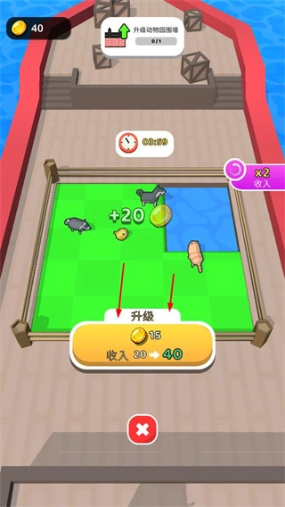 4、升级动物围栏,消耗金币提升收入,同时完成升级动物围栏任务,优化动物管理和资源获取