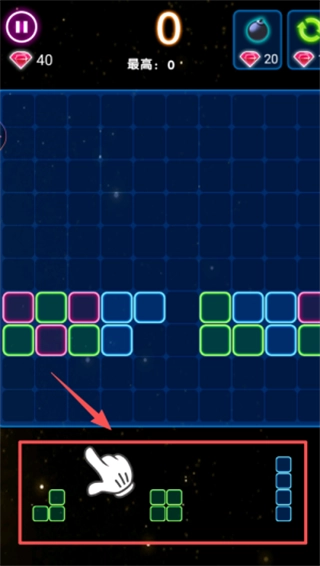 1. 把底部给出的方块通过拖拽操作放到10x10的网格上,放置之后就不能再移动或者旋转了,所以每一个决定都得慎重考虑。