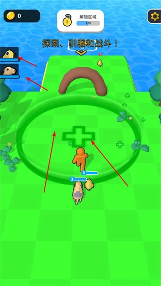3、在新区域探索、驯服动物,通过战斗和互动壮大动物团队,解锁更多动物种类。