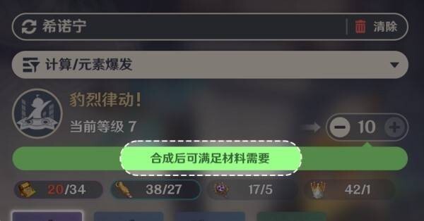 新版本开启后,养成计算器的入口会调整至界面左上角。在使用养成计算器的过程中,当前所持有的合成材料满足设置好的养成需求时,将会弹出满足需求的提示。
