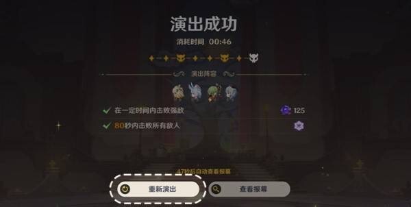5.6版本起通关最后一幕挑战后,将在通关结算界面开放【重新演出】功能,助力旅行者补全星章。