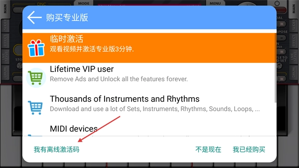 3、在购买专业版界面点击【我有离线激活码】,进入离线激活流程。