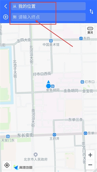 3、在搜索框输入“北京站”,可选择北京站、北京站(北进站口)、北京站地上停车场等多个相关地点作为终点。